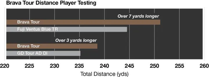 Brava Tour-Tests im Vergleich zu den 2 führenden Schäften ergaben, dass 63% der Spieler im Durchschnitt 7 Yards mehr Weite erzielten