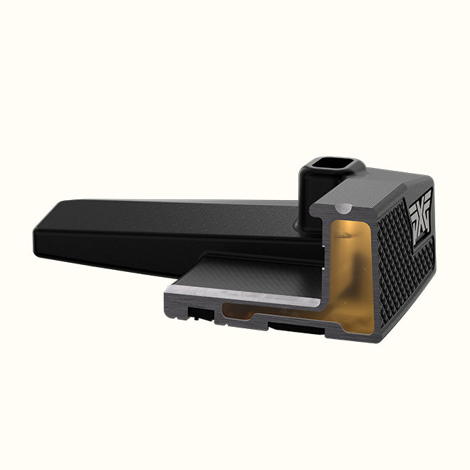 Das Bat Attack ZT verfügt über einen präzisionsgefrästen, hohlen Körper aus 303 Edelstahl. Im Inneren injizieren wir S COR™, ein proprietäres leichtes Polymer, das die ultradünne Schlagfläche unterstützt. Dies dämpft den Klang und die Vibration beim Aufprall, liefert ein reines Gefühl und ermöglicht es, mehr Masse um den Umfang herum zu platzieren, um die Fehlerverzeihung zu erhöhen. | Die dritte Generation der aggressiven Pyramiden-Schlagfläche von PXG ist so optimiert, dass sie mit den Dimples des Golfballs interagiert, um ein konsistentes Rollverhalten und Gefühl zu gewährleisten. Die Struktur bietet die weiche Akustik eines Inserts mit dem reaktionsschnellen Feedback eines gefrästen Putters. | Das Gewicht und die Balance des Bat Attack ZT Putter können durch den Austausch der einstellbaren Gewichte fein abgestimmt werden. Die Masse wird auf den Umfang umverteilt, wodurch das Trägheitsmoment (MOI) erhöht wird. Eine weitere Feinabstimmung bei einem Fitting sorgt für optimale Startbedingungen, die auf Ihren Schlag und Ihre Vorlieben abgestimmt sind. |
